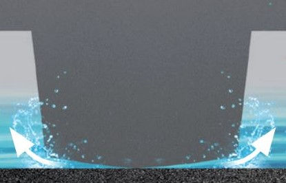 La forme du pavé est améliorée pour une évacuation de l'eau efficace afin de réduire le risque d'aquaplanage.