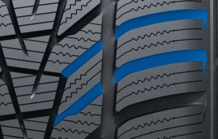 Ces rainures innovantes permettent d'améliorer les performancees d'adhérence sur sol mouillé grâce à un drainage de l'humidité de la surface du sol.