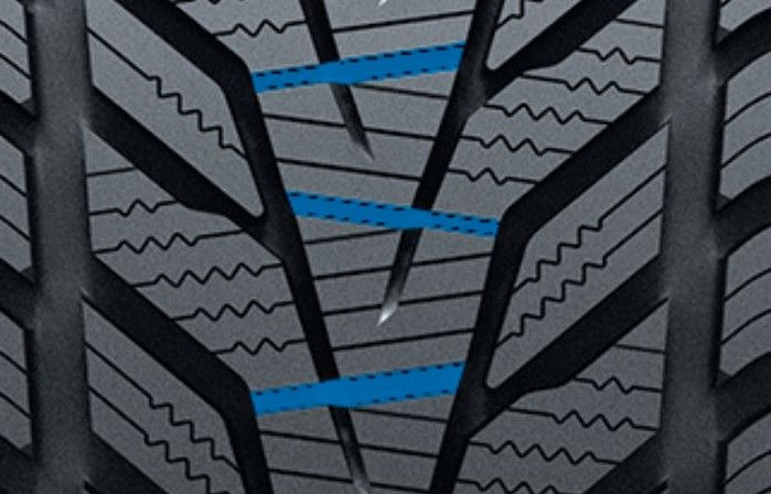 Les rainures latérales en forme de pics évacuent la neife dans toutes les directions ce qui permet de conserver la maniabilité sur route enneigée.